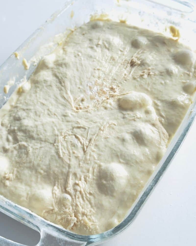- The dough will be very soft and sticky — this is what gives you the airy, bubbly texture. Avoid adding extra flour.